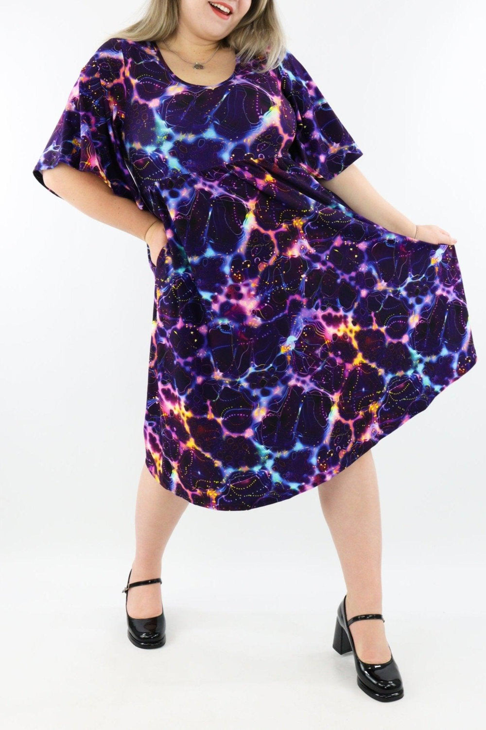 Mermazing - Short Sleeve Skater Dress - Knee Length - Side Pockets - Pawlie