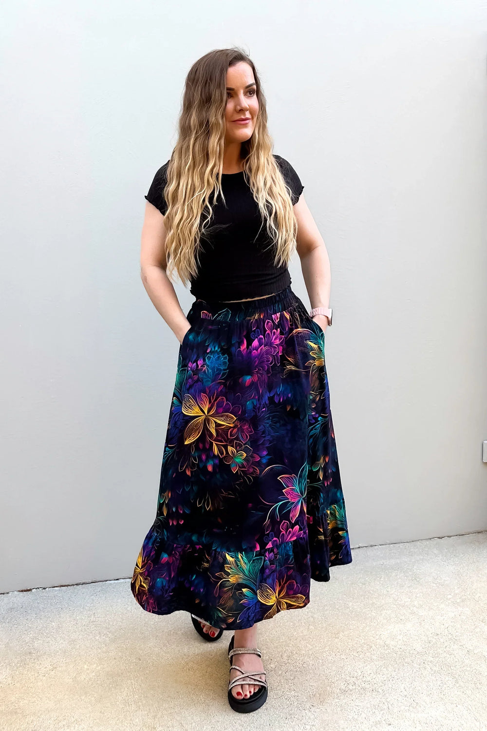 Zinnia Midi Skirt - Spectral Garden - Pockets