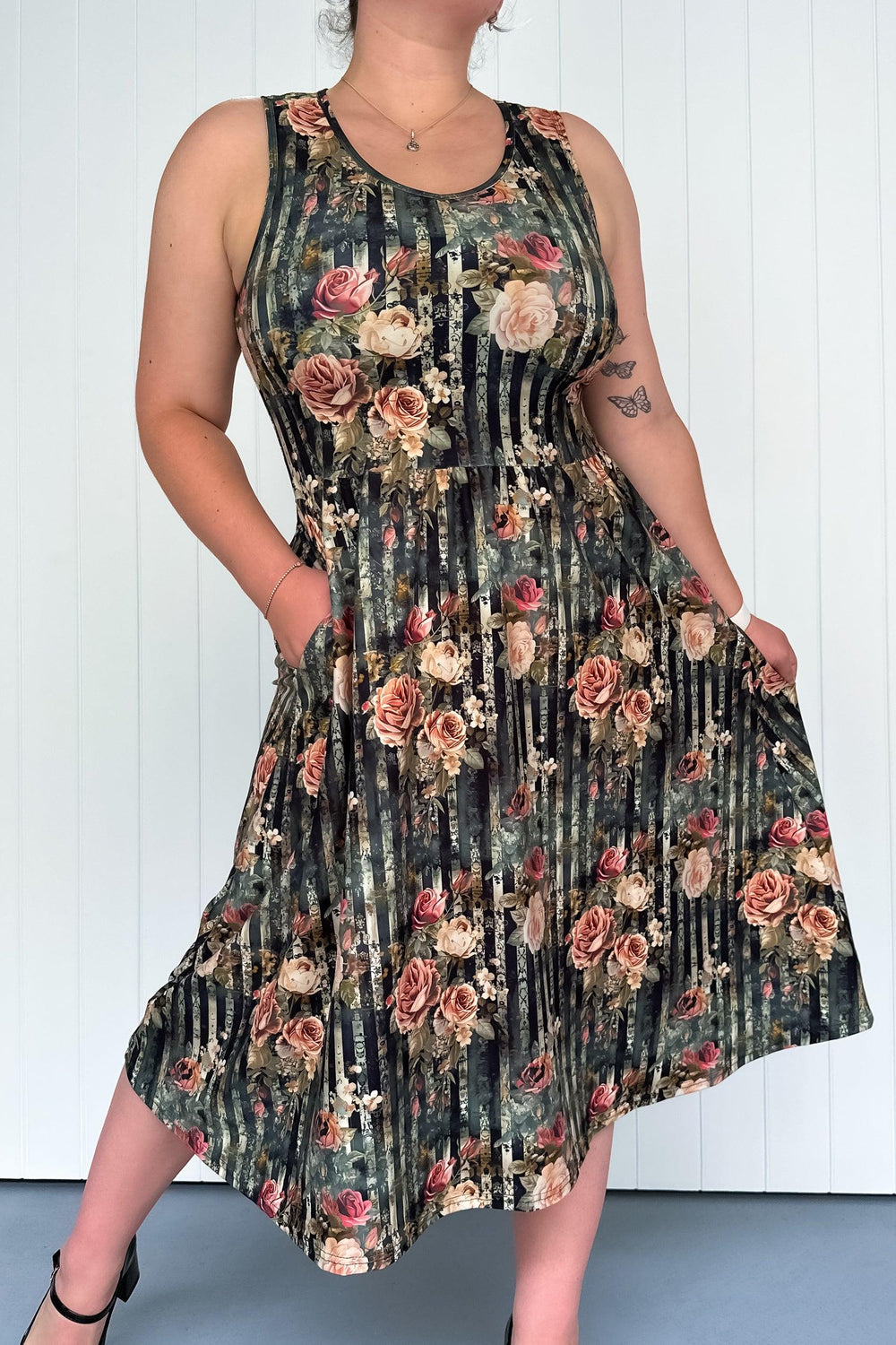 Heritage Rose - Sleeveless Midi Dress - Pockets