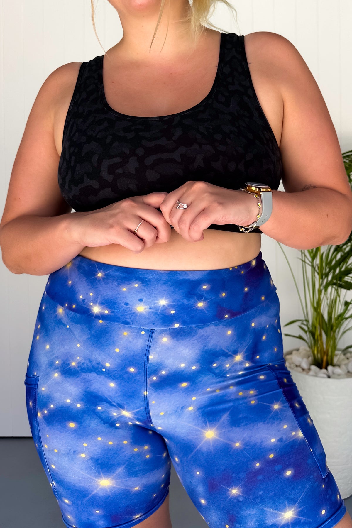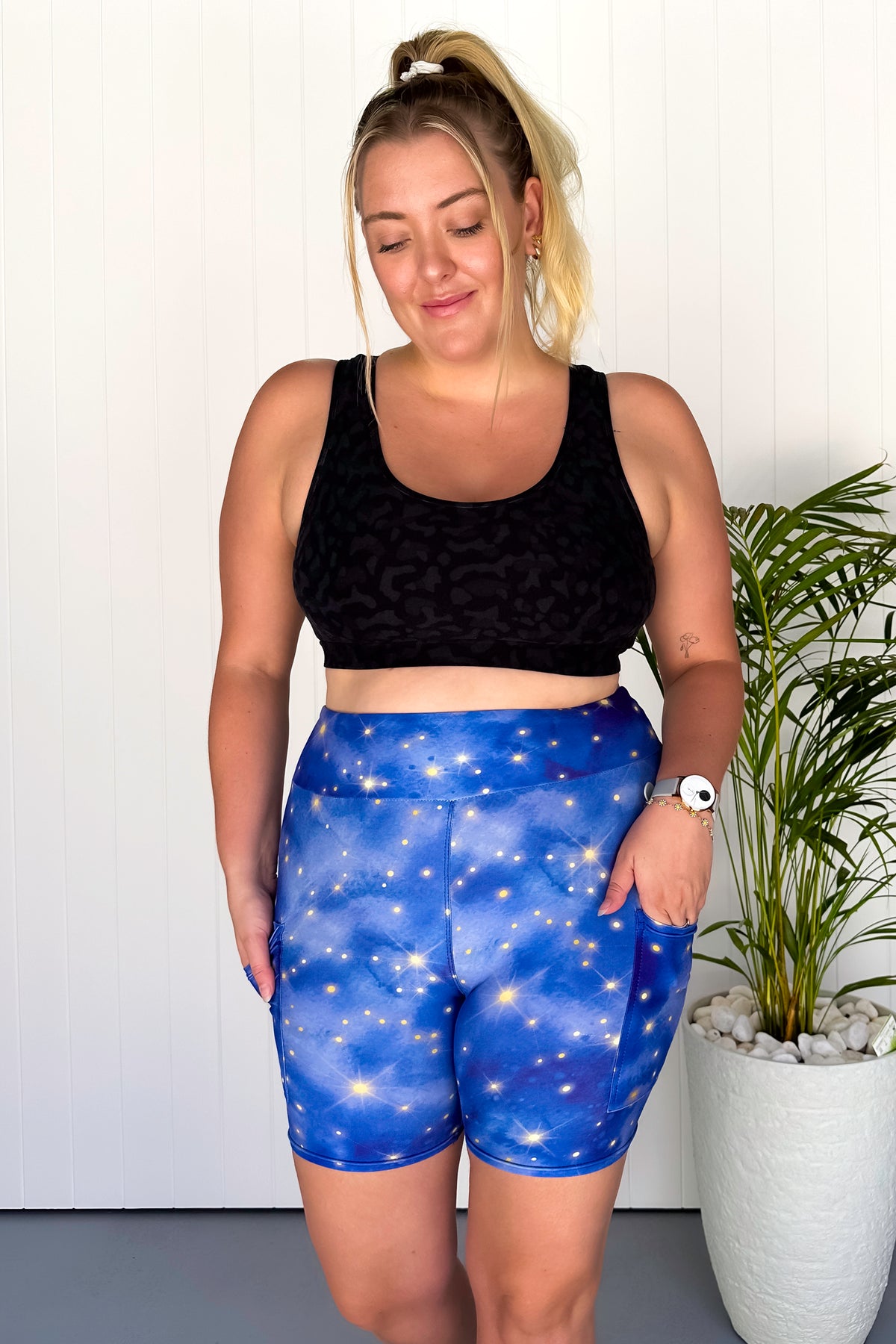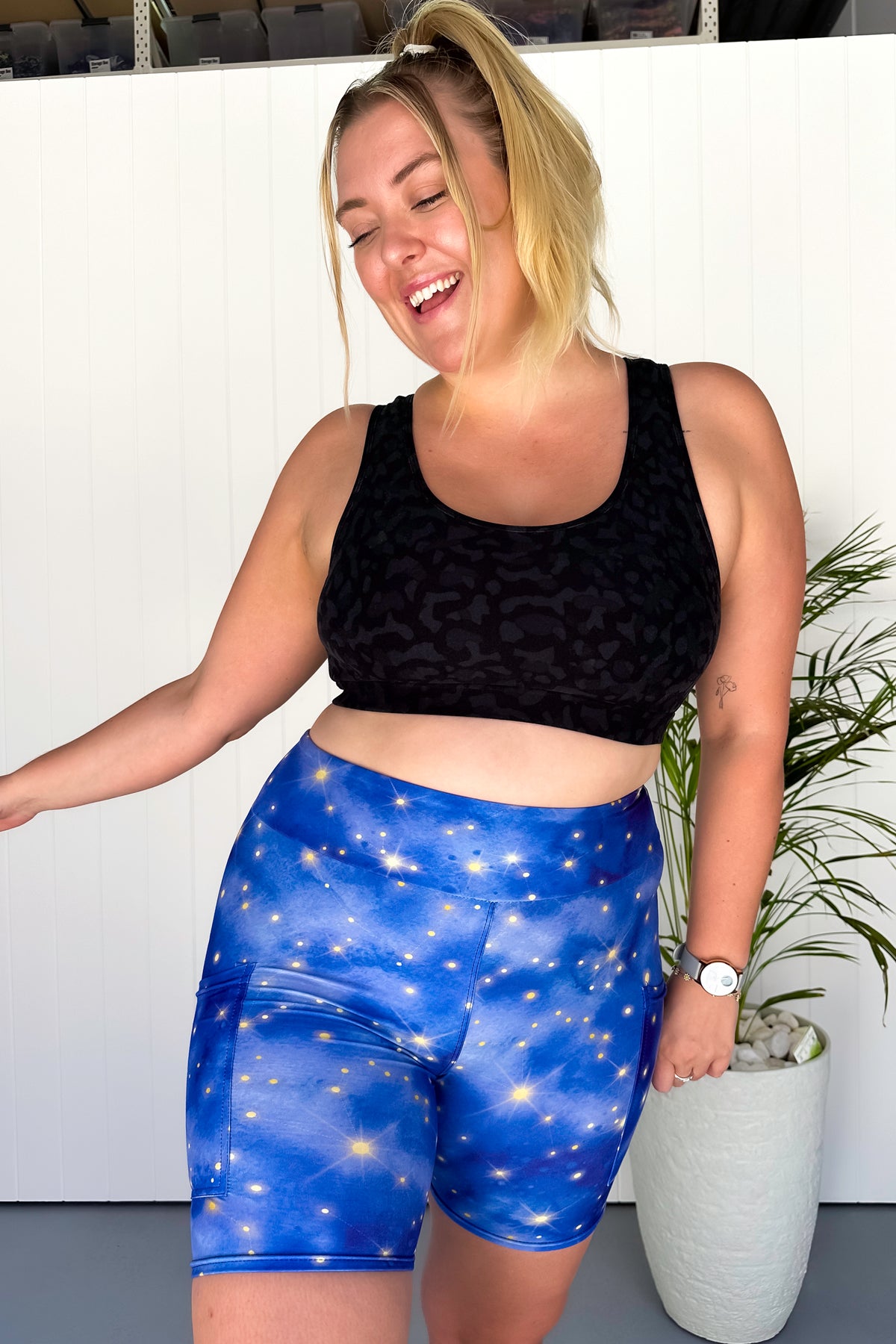NASA may busy exploring space, but we've already captured a whole galaxy and put it on these shorts. The Admiral Sky Casual Mid Shorts features a cloudy, deep cosmic blue background littered with golden twinkling stars. And if you're someone that prefers a complete outfit, you can pair these shorts with our matching dress*.