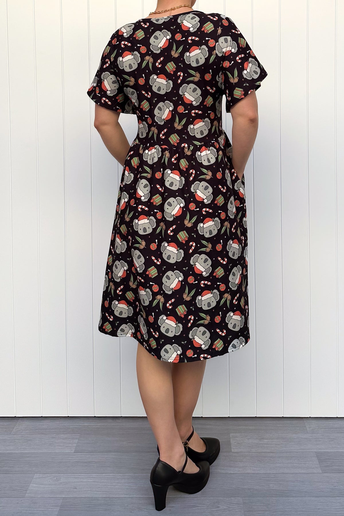 Christmas Koala - Knee Length Dress - Flutter Sleeve - Pockets