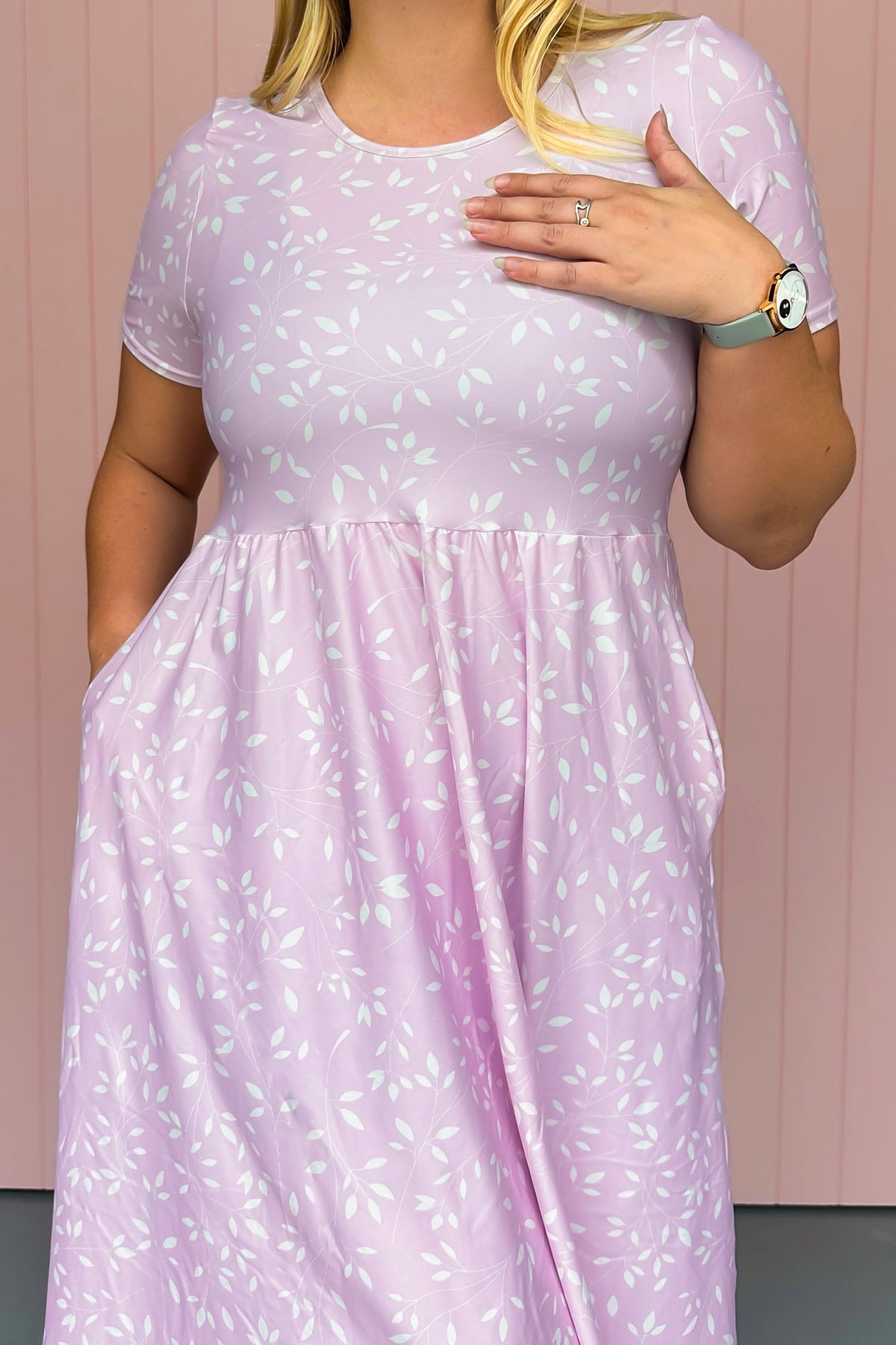 Lilac Petals - Midi Dress - Short Sleeve - Pockets