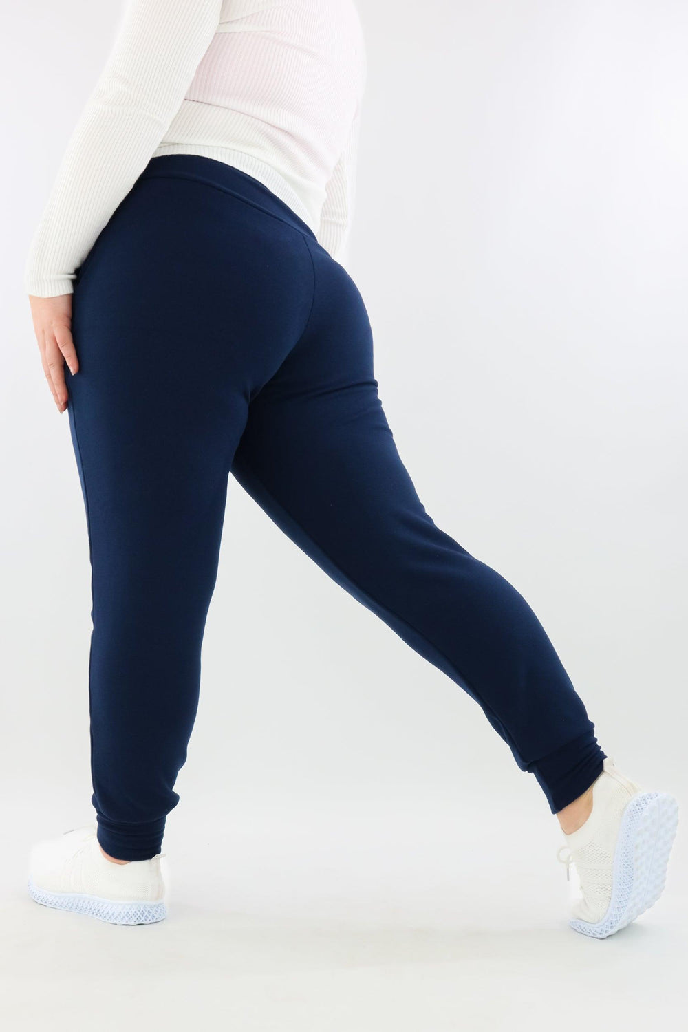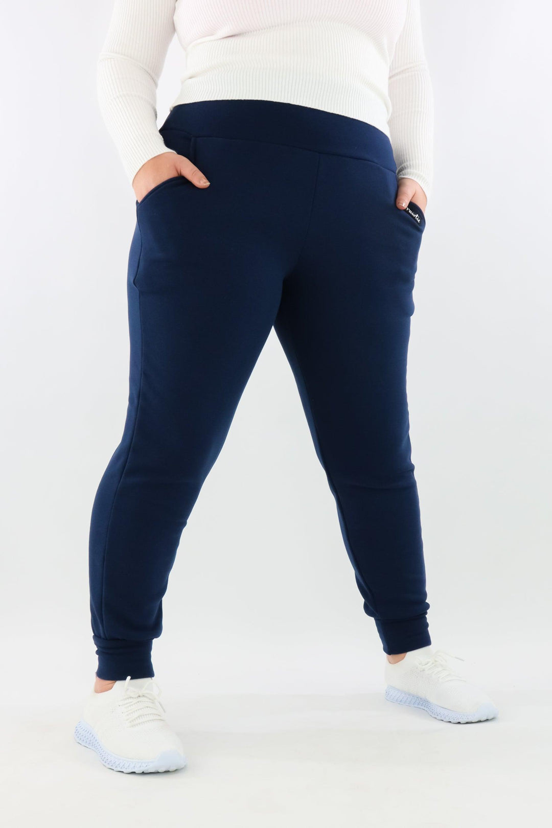 The comfiest & warmest jogger pants you'll ever wear! Pawlie's Navy Fleece Joggers feature a soft fleecy lining for extra warmth and cosiness in our new wide leg joggers style. The super comfy extra high waistband that can be folded down to a height of preference has no elastic, but stays put without digging in so it feel like you're wearing nothing at all.