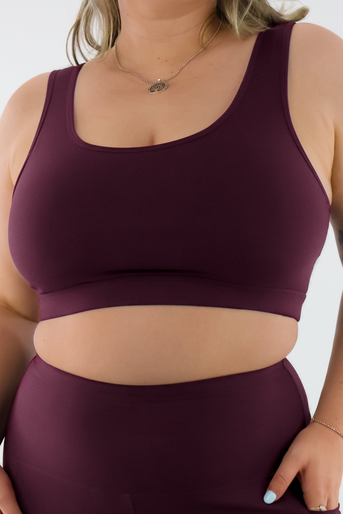 The Plum Crop Top wraps you in deep berry tones and buttery-soft comfort. With a reversible design that can be worn high neck or scoop, it gives you two flattering looks in one. Double lined and lightly supportive, it’s designed to move with you through lazy mornings, busy afternoons or chill nights in.