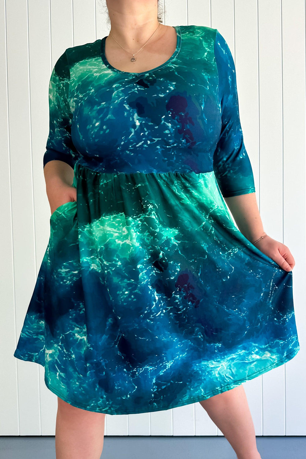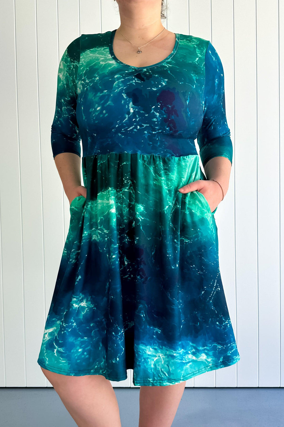 Powerful Ocean - 3/4 Sleeve Skater Dress - Knee Length - Pockets