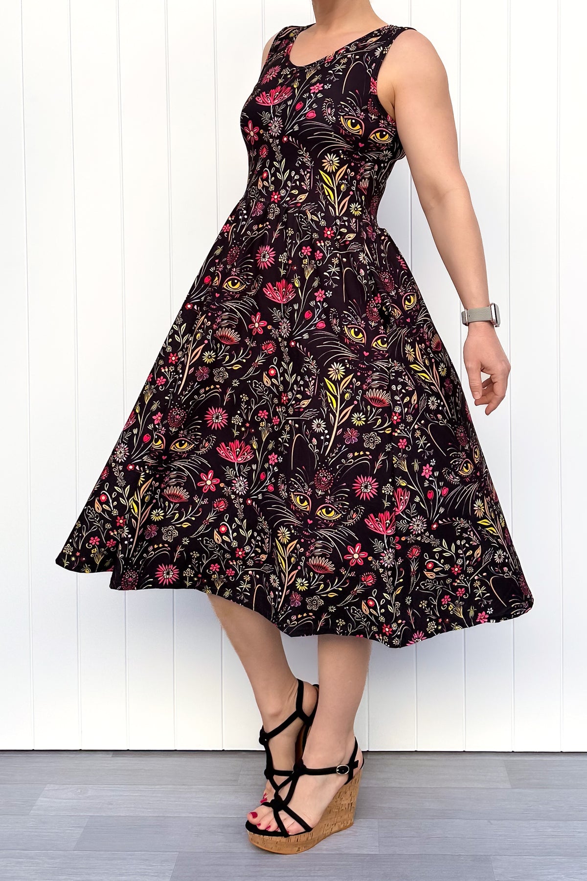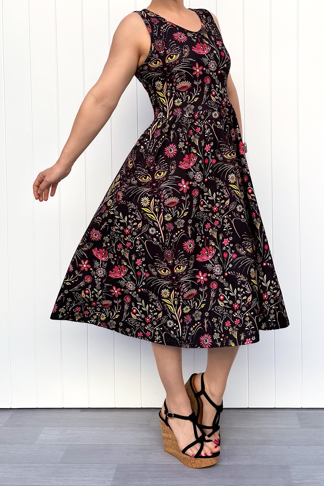 Bright, lively and full of personality, this dress will add a little feline charm with every wear.